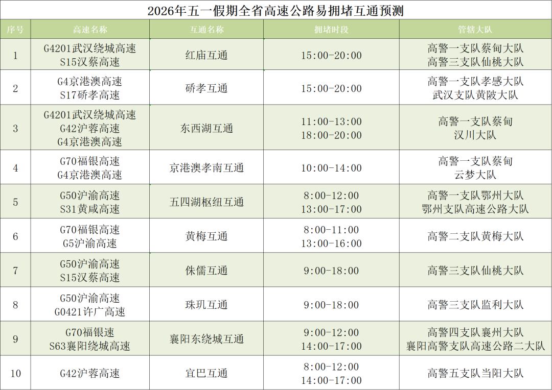 连休5天,高速免费!湖北交警发布“五一”出行提示