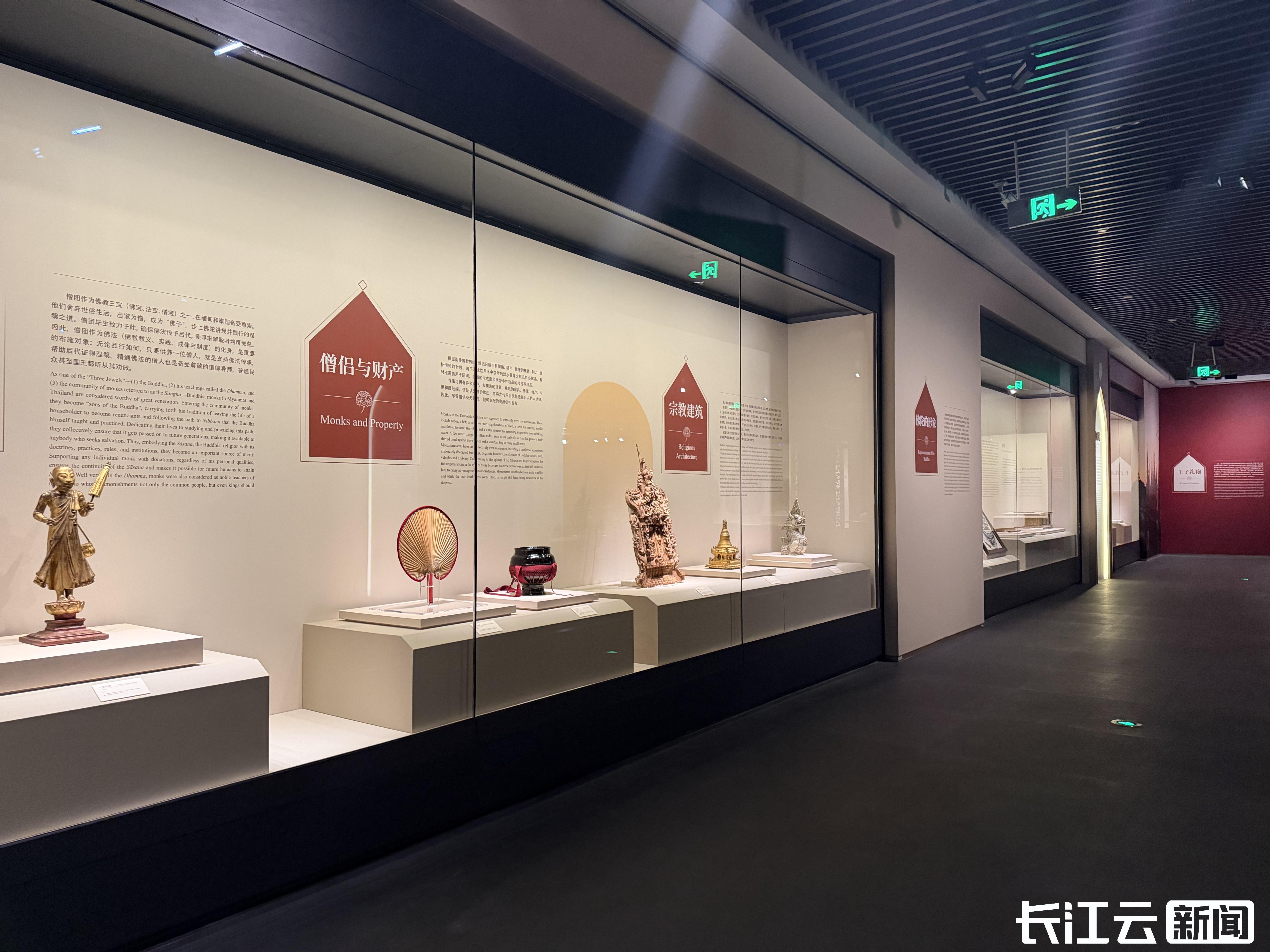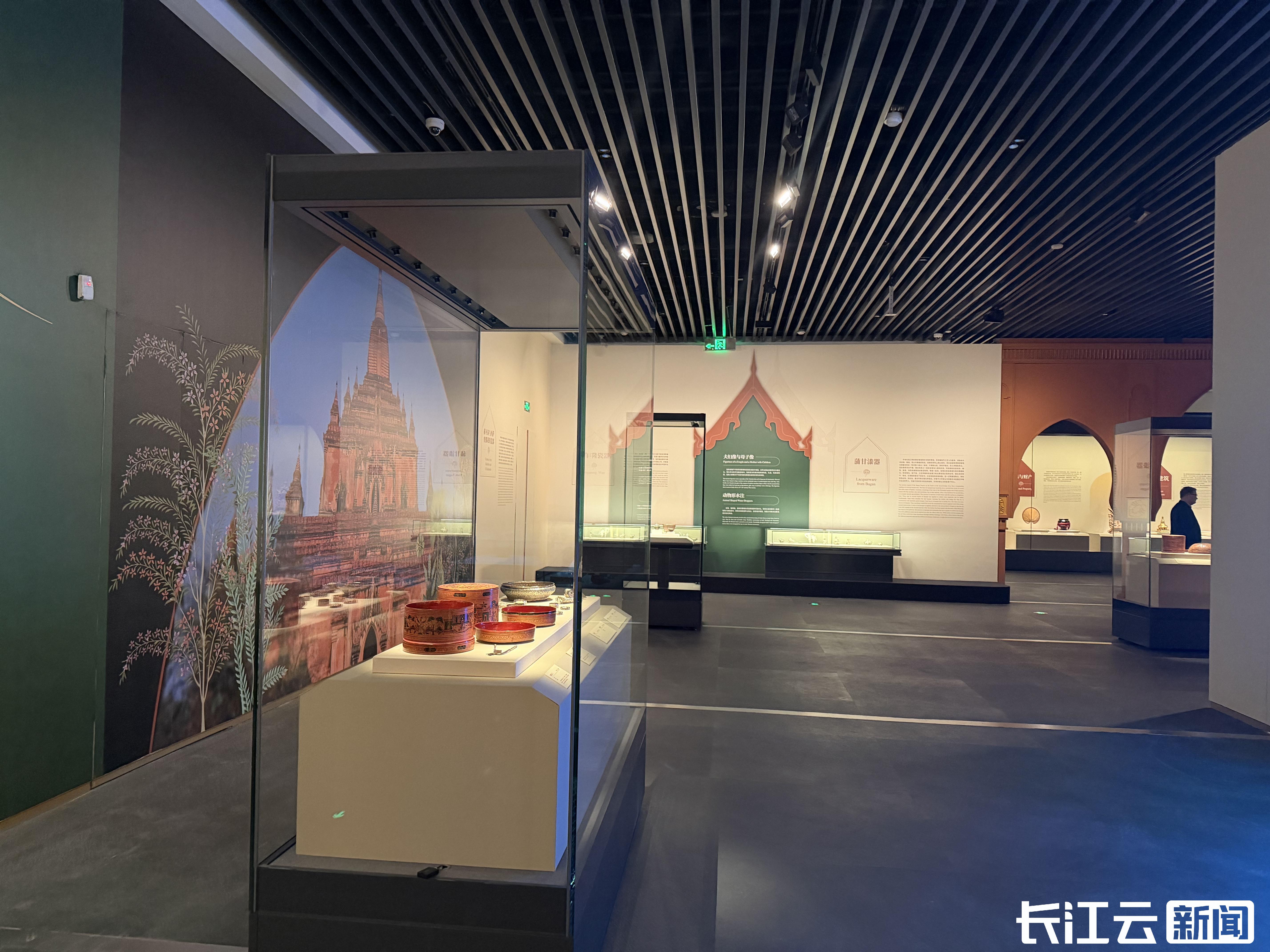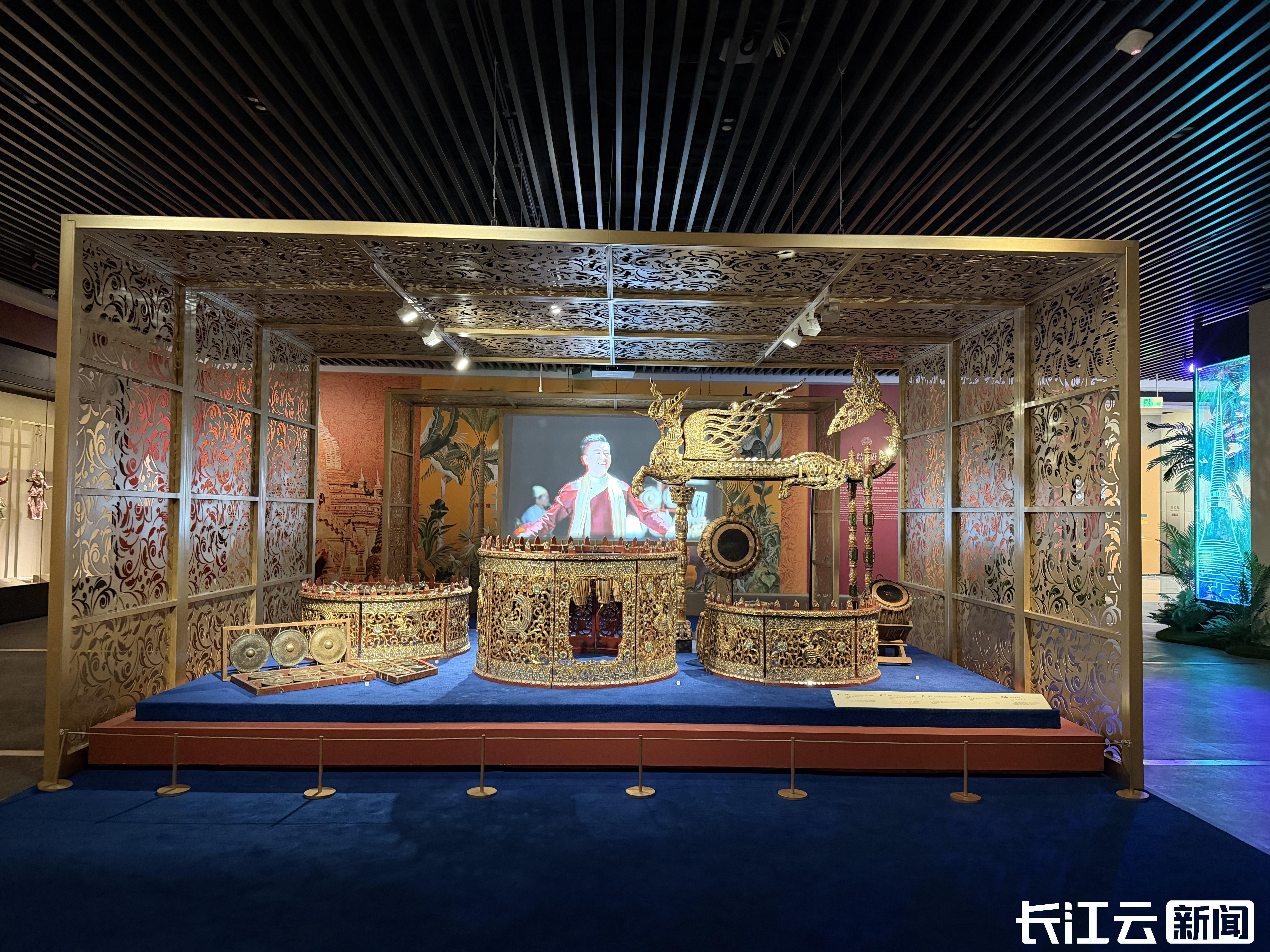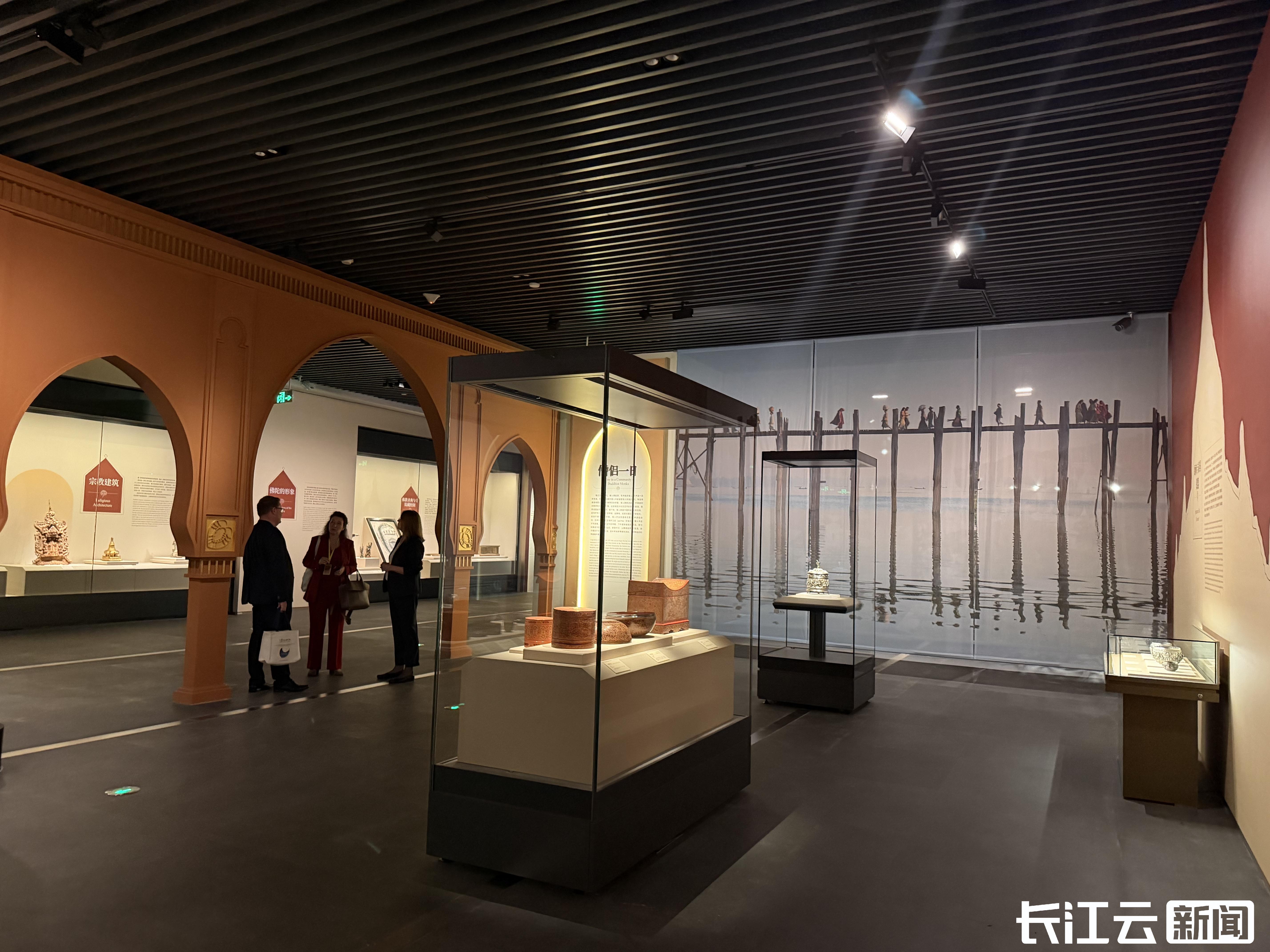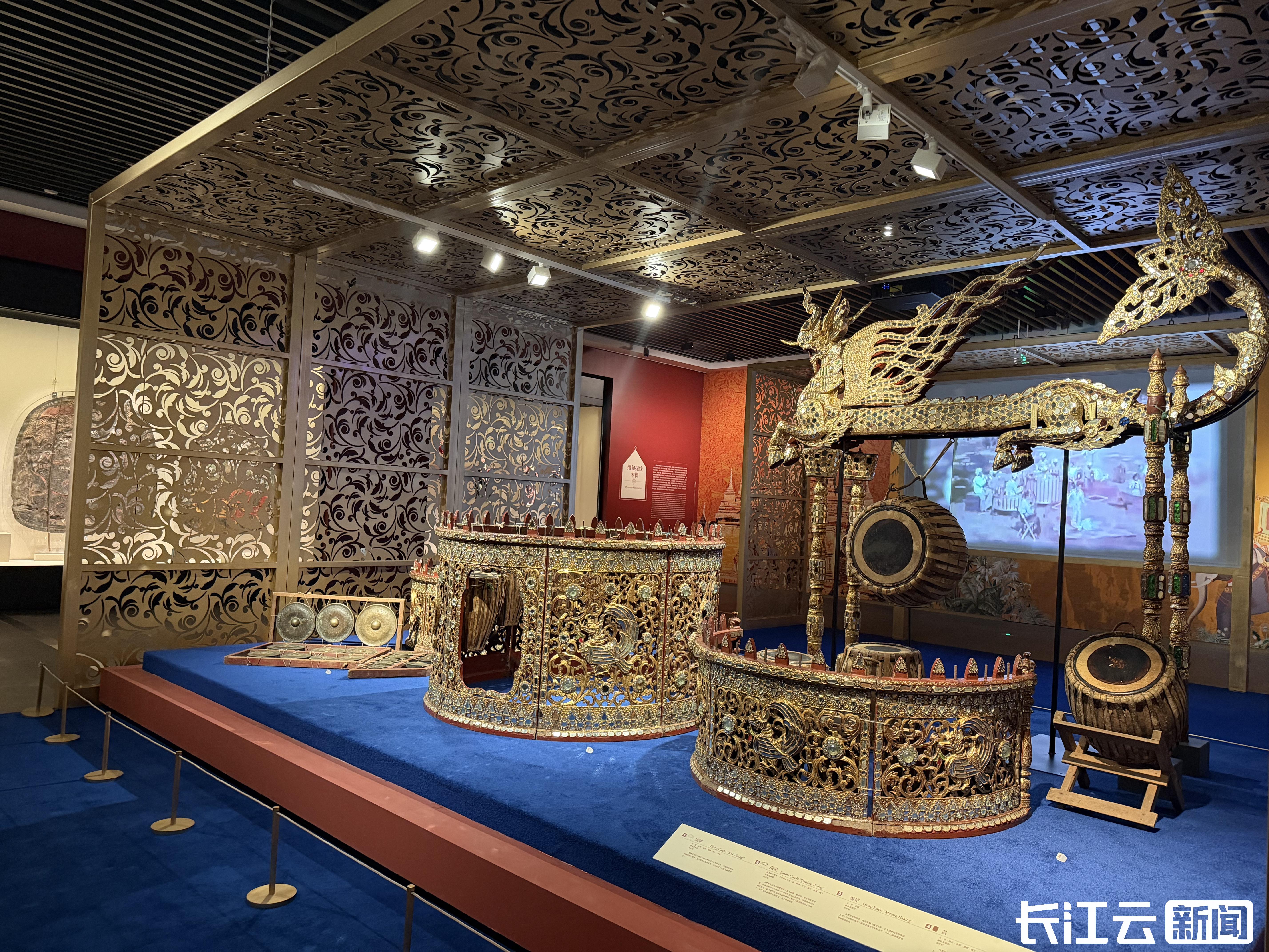 展览以“家庭一日”“僧侣一日”“节庆时刻”为叙事线索,从社会生活史的视角,展现伊洛瓦底江与湄公河之间地区从公元八世纪至二十一世纪的文化变迁。观众可通过围鼓乐队、泰国皮影、宾乍隆瓷碗、五佛龛等重点展品,了解该地区在中国、印度及本土实践共同影响下形成的独特人文景观和文化遗产。不仅如此,观众还可以通过视觉、气味、声音等媒介,以“局内人”视角沉浸式感受当地的社会风貌。斯图加特林登博物馆是德国规模最大的世界文化博物馆之一,馆藏有约 15万件艺术品、考古类文物、手工艺品和民俗文化藏品,涵盖全球各大洲的文物与艺术品。自2017年湖北省博物馆与该馆首次签署合作备忘录以来,双方在藏品研究、展览策划等方面持续深化交流。2024年4月,在湖北省政府领导访德期间,两馆续签合作备忘录,本次展览也是推动国际文化交流、落实对外合作成果的具体体现。