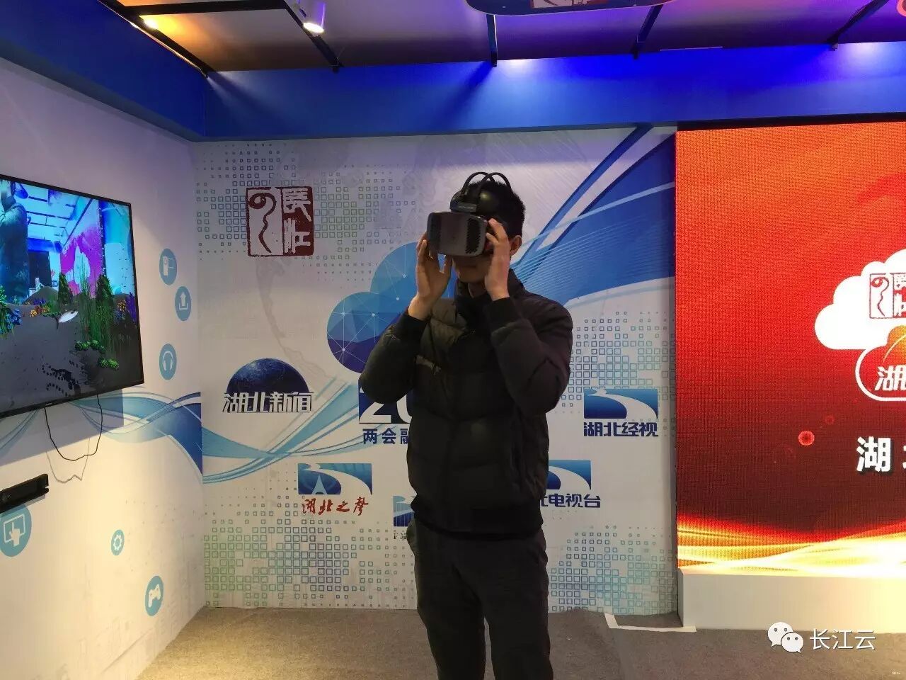 在两会上,湖北广电全面拥抱高科技,不仅率先推出了全国首个两会VR全景式直播,更在会场打造AR体验馆,首次采用AR\VR技术表现“两会”重大主题:当观众进入“生态长江” AR体验区,就仿佛遨游在水草丰美的江底,江豚化身导游,带领观众感受生态长江的新变化。在VR体验区,观众戴上特制头盔之后,就可以身临其境感受湖北黄冈蕲春县发展光伏产业,扶贫攻坚的现场。