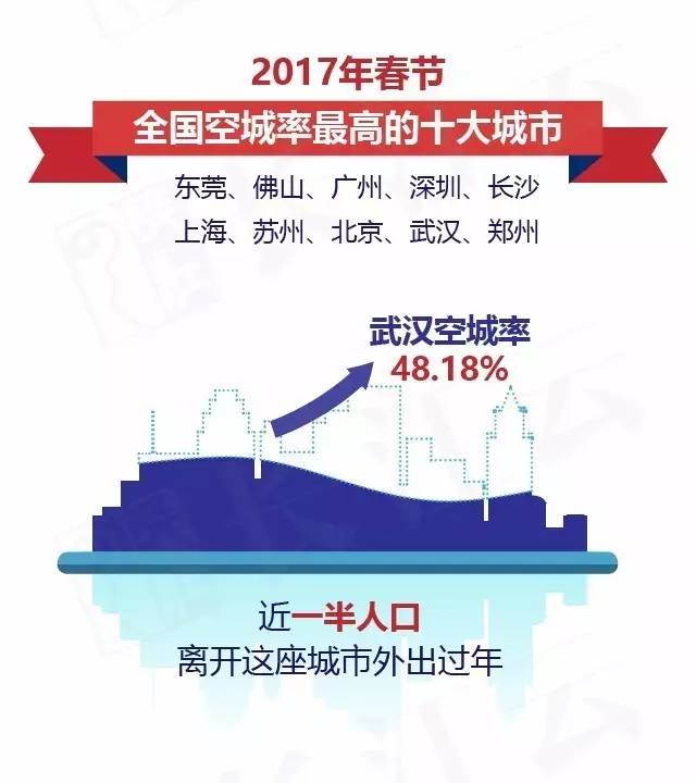 春节期间,互联网企业奇虎360大数据中心发布2017年春节“空城指数”,武汉空城率48.18%,排名全国第九。