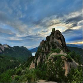 铁砦位于孝感市大悟县刘集镇铁砦村西部,是一个呈金字塔形的,体积约20万方的花岗石包。由于大自然的鬼斧神工,铁砦拨地而起矗立于崇山峻岭之巅,显得格外巍峨险峻。四面悬崖峭壁,只有一条仅能够容一人通过的一百多级石梯,才能到达顶端。真可谓“一夫当关、万夫莫开”。