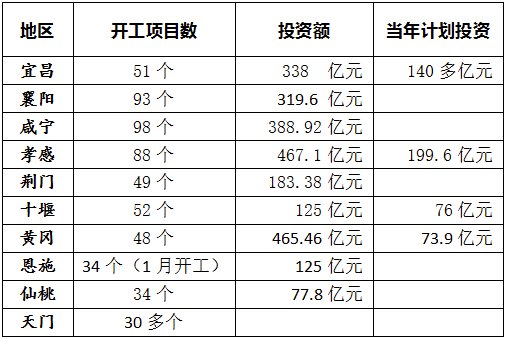 昨天,孝感、黄冈、天门、仙桃等地都举行了2017年 “重大项目开工月”启动仪式,此前,襄阳、荆门、十堰、恩施、天门等地也已经举行规模不等的重大项目集中开工活动。