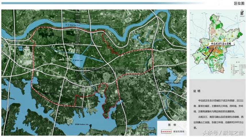 中法武汉生态示范城是中法两国“元首项目”。2014年3月26日,在中法两国元首见证下,两国政府代表签署《关于在武汉市建设中法武汉生态示范城的意向书》,明确生态城选址武汉市蔡甸区,用低碳生态和产城融合发展理念,建造城市可持续发展典范。这是继中新天津生态城之后,中外政府间合作的最大生态城项目。