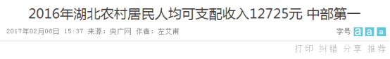 人均一年挣3万多是个什么概念?要知道,2016年湖北农村居民人均可支配收入为12725元,是中部最高的。