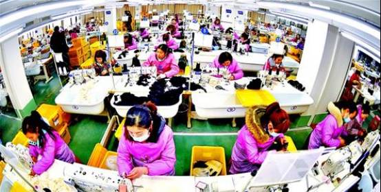 △宜昌湖北广宜服饰有限公司车间内一片繁忙,该公司为宜昌本土人士返乡创业所办