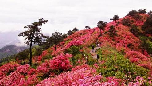 麻城龟峰山风景区古杜鹃群落分布最集中,保存最完好,属原生态古杜鹃群落。总面积达10万多亩的景色最美丽、最壮观,堪称华中地区旅游景点中的经典。