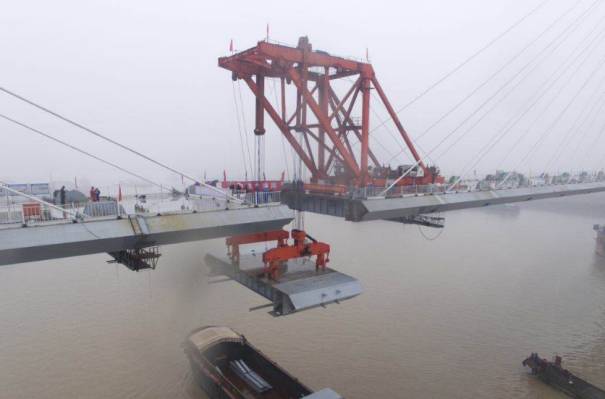 世界首次在斜拉桥上采用先架设、合龙钢箱梁,再安装钢桁结构的架设方案;