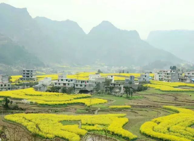 大路坝油菜花,坝上春烟小康家,田园疑是铺金沙。
