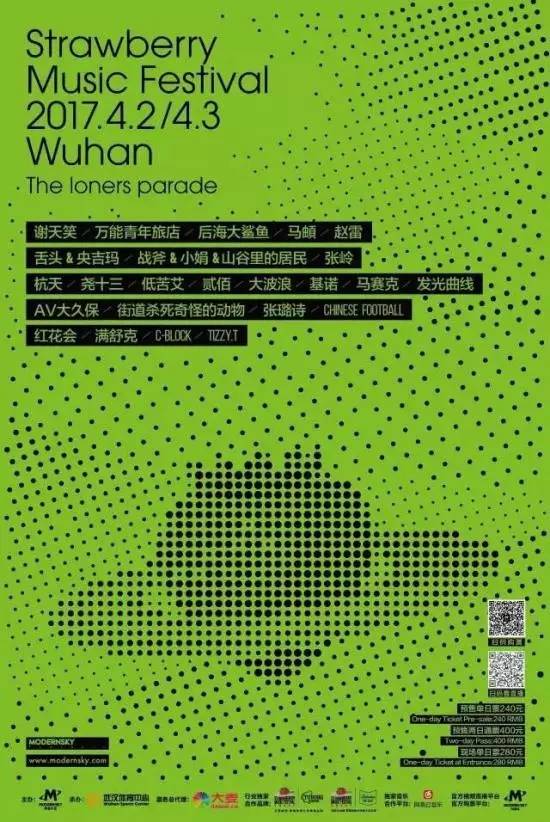 2017草莓音乐节首站将于4月2日、3日在武汉体育中心举行。届时将有万能青年旅店、谢天笑、赵雷、舌头&央吉玛、战斧&小娟山谷里居民、马頔、后海大鲨鱼、尧十三等重磅音乐人悉数登场。