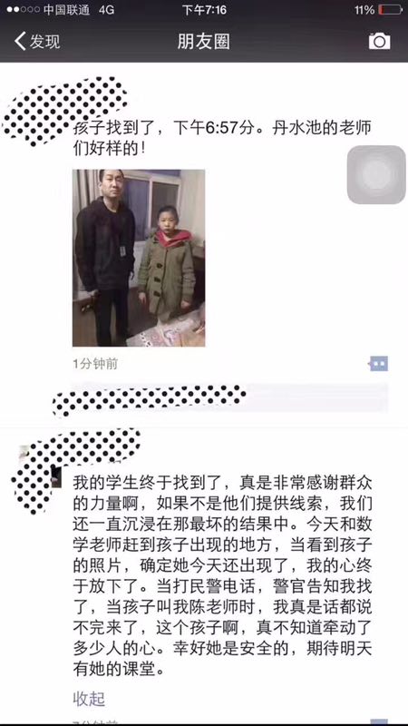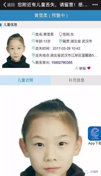 ↓↓↓↓ CCSER儿童失踪预警平台上显示的登记消息