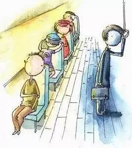 有的同志很无奈,即使全车的人都坐下了,他还站着。