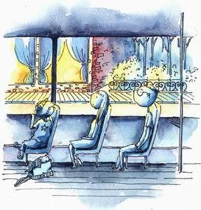 下车的一刻,他回顾车厢,也许会为区区一个座位而感慨,自以为大彻大悟。