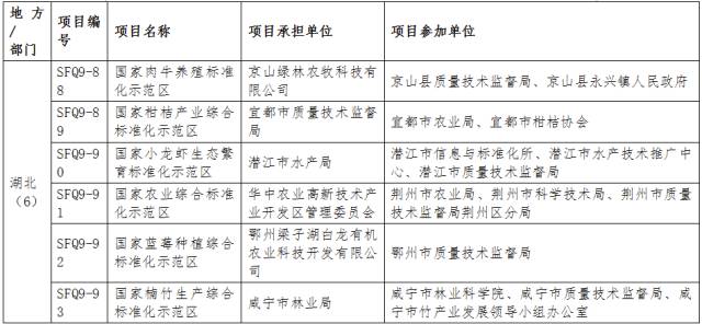 6大农业标准化示范区的入围