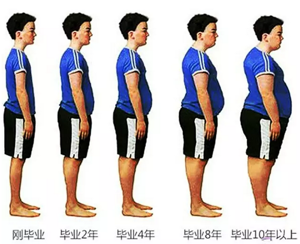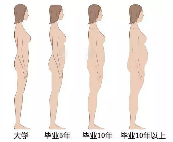 下面是男人和女人毕业十年后的身材对比,快来自测下: