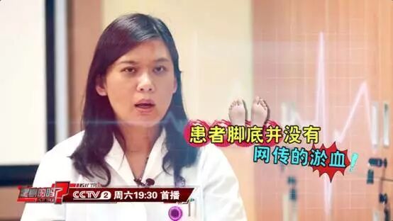 清华大学附属北京清华长庚医院神经内科副主任医师张菁介绍:神经科的大夫最常做的一件事情就是把病人的袜子脱掉,然后划他脚底的病理征。所有脚底的病变都是能看得见的,但是这么多的病人确实没有见到,就是在急性脑出血的病人脚底会出现两团黑色的淤血这种情况。