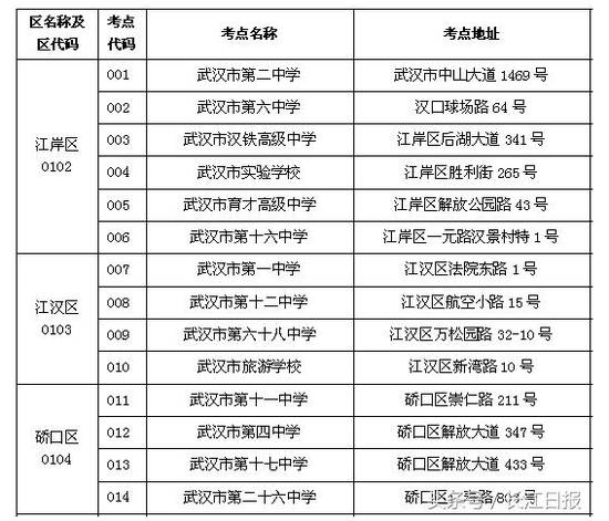 2017年武汉市高考考点今天(5月27日))公布啦!