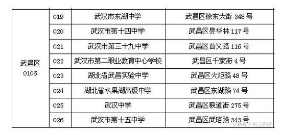 武汉市招考办有关人士提醒,6月6日下午看考场时,务必要明确考点方位,问清楚考点到底是在初中部,还是高中部。如武汉一中(法院东路1号)是高考考点,武汉一初慧泉中学(民主一街187号)不是考点;育才高中(解放公园路43号)是考点,育才美术高中(工农兵路)不是。