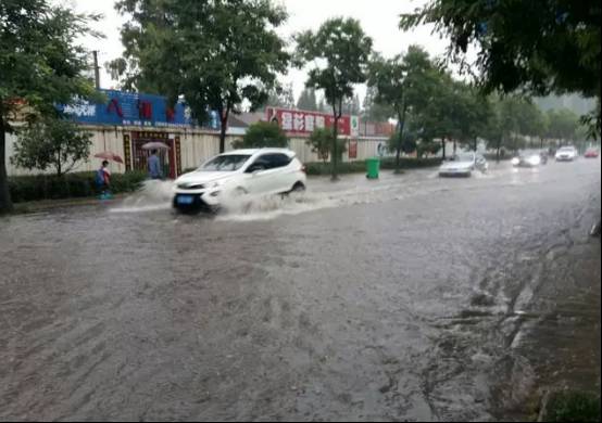 玉桥路积水严重,车在水中行!