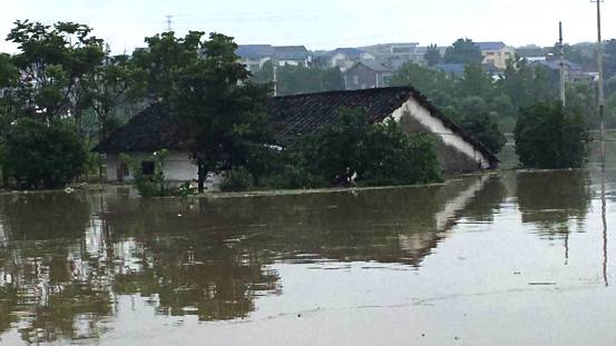 房屋被淹,从图中可以看到,水位已经比较高了。