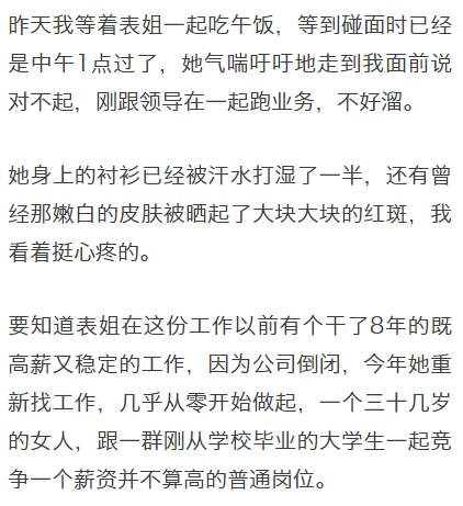 我问表姐,工作委屈吗?表姐无奈地回道:“昨天中午天气太热我忙着给客户送资料,差点热晕在马路上。”