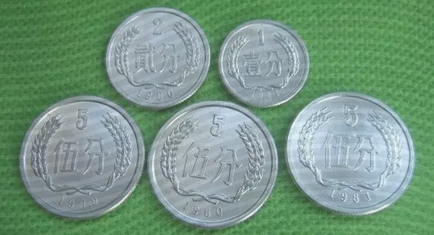 我国从1955年起就开始发行铝制的壹分币和伍分币,从1956年起开始发行贰分币,在以后的几十年中,这三种面值的分币也不是每年都发行,相对而言,壹分币的年号最多,贰分币其次,伍分币最少。