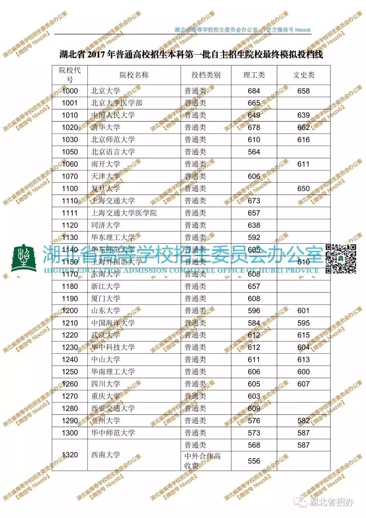 73所湖北一本自主招生院校最终模拟投档线出炉