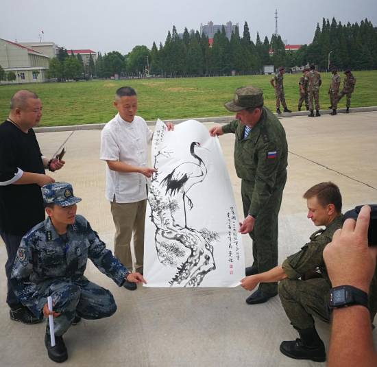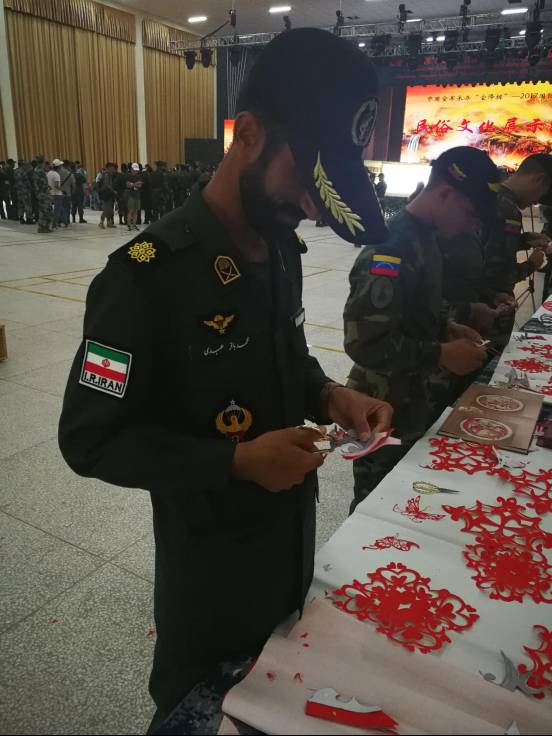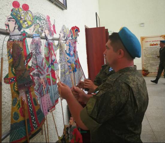 白天,参加比赛的6个外国国家代表队来到空降兵某旅“友谊之家”民俗文化展示中心,感受中国传统文化魅力。