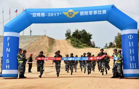 由中国空军承办的“国际军事比赛-2017”空降排项目在湖北广水举行开幕式。