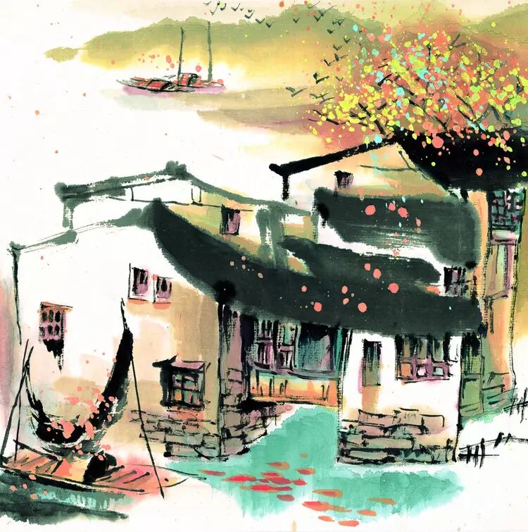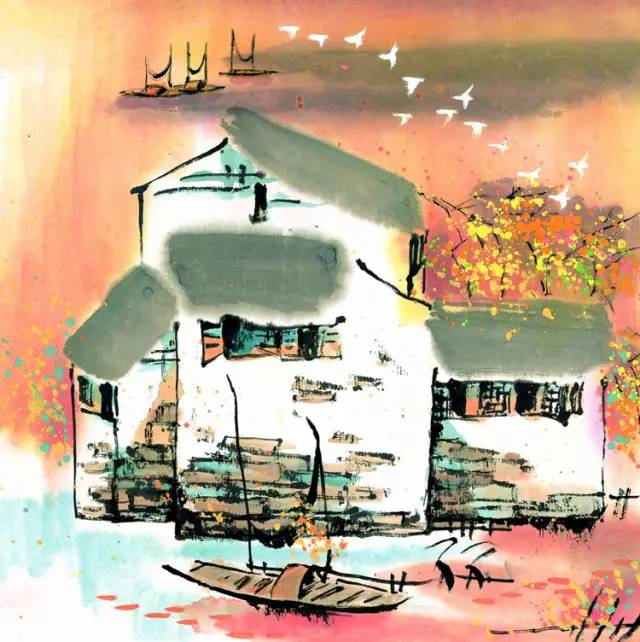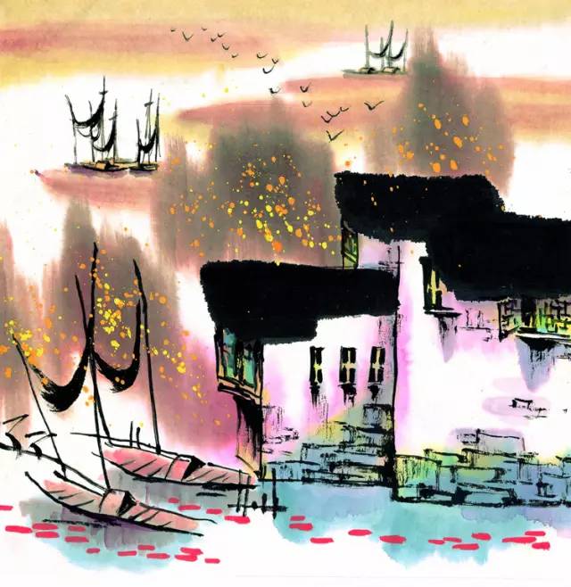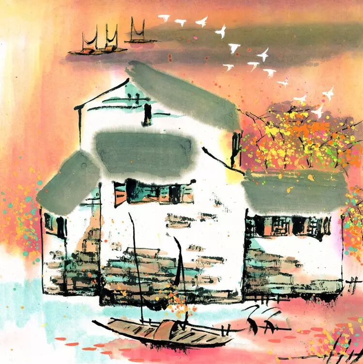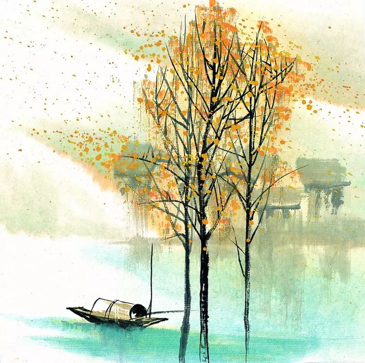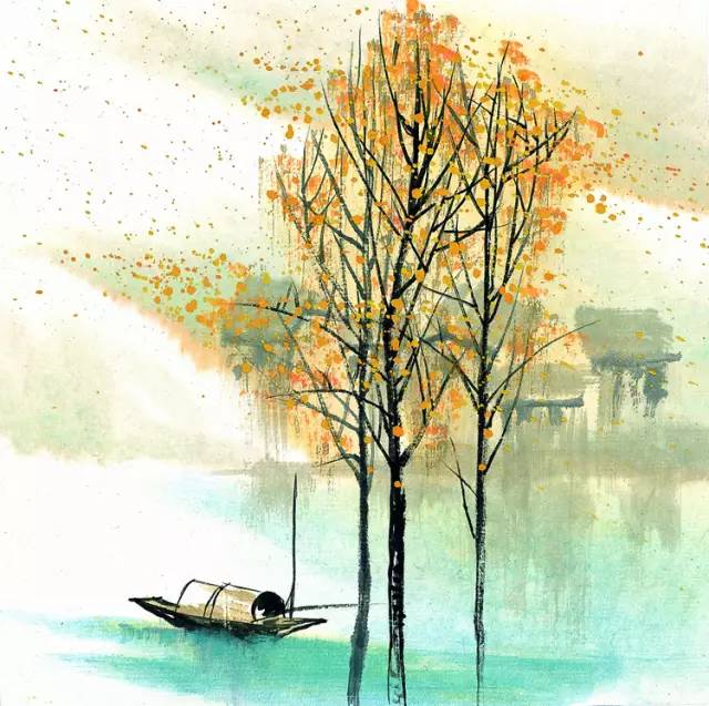 萧萧江上荻花秋,做弄许多愁。半竿落日,两行新雁,一叶扁舟。