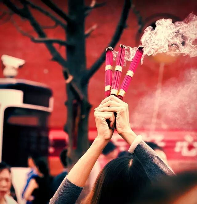 在氤氲的香炉面前,虔诚膜拜;