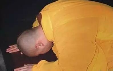 “顶礼”,向佛菩萨或上座行此礼。双膝跪下,头顶叩地,舒两掌过额承空,以示头触佛足,恭敬至诚。