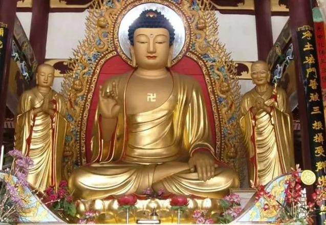 有的大雄宝殿不是一尊佛,而是三尊佛。分别是法身佛“毗卢遮那佛”、报身佛“卢舍那佛”、应身佛“释迦牟尼佛”。这三尊其实都是释迦牟尼佛,是根据大乘教理表示佛的三种不同的“身”。