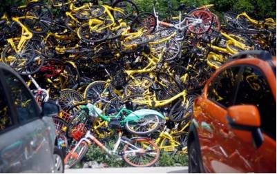 目前,上海已有150万辆共享单车,按照50人一辆的标准,上海只需要50万辆共享单车。单车数量严重超标,单车“坟场”随处可见。