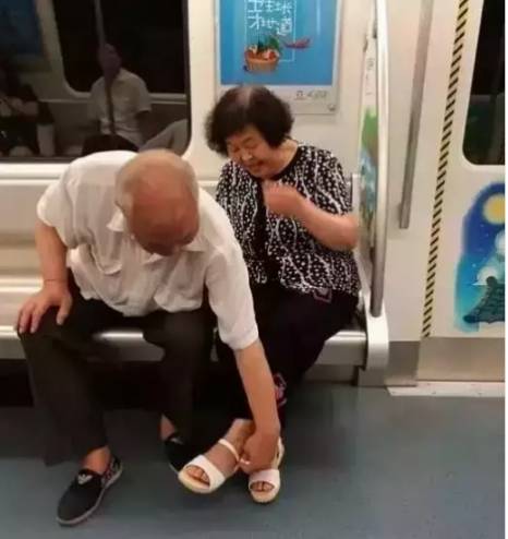 有网友在地铁上,拍到了温暖人心的一幕:一位老奶奶的鞋子坏了,她的老伴不仅帮她修好,还细心地帮她穿上。看,老奶奶笑得多甜。