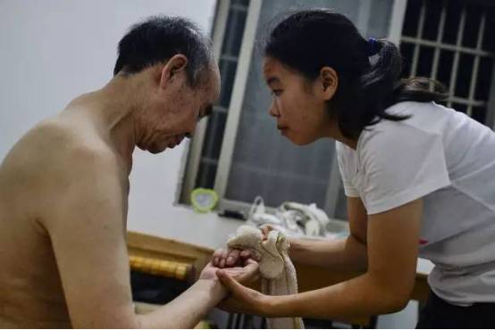 那时,陈春林每天5点不到就起床,照顾完父亲洗漱后,去食堂打饭;夕阳西下,陈春林常推着轮椅,将父亲带到操场上散步;晚上照料父亲睡着后,她还会借着应急灯光再看一会书。每次出门,陈春林都会在父亲床边倒好开水,将便盆和拐杖放到床边,确保自己走后,不会给父亲带来不便。老师和同学们都称她是“最孝女孩”。