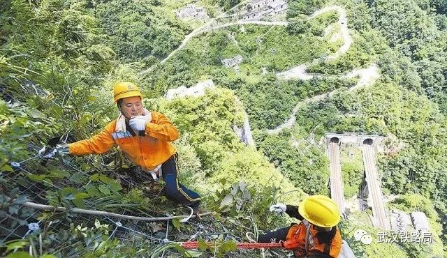 由于山路崎岖,坡度较大,碎石磨脚,他们的日常工作环境中,许多情况下只能凭借安全绳以及山壁突出的岩石、树根徒步上山。正是有他们这群不辞辛劳的巴东巡山工日夜守护着线路,才给我们美丽宜万铁路的安全畅通提供了保障。在我们享受宜万铁路给我们的旅途带来的便利同时,别忘记给他们敬个礼。