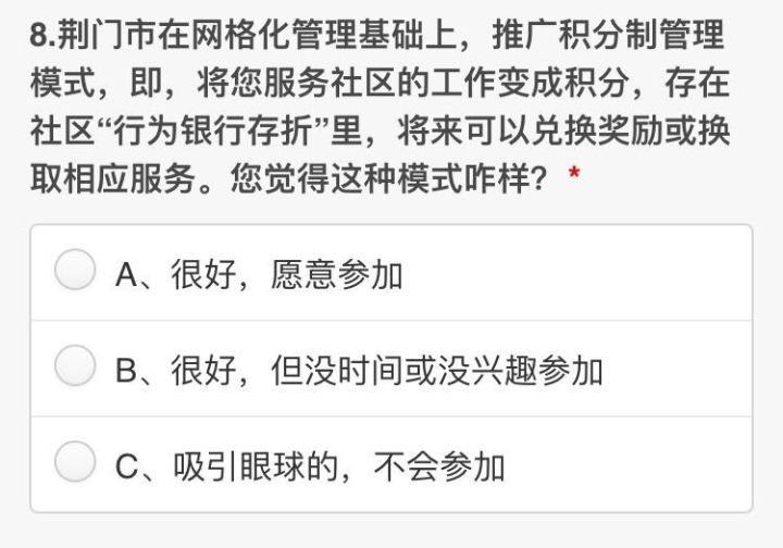 比如,宜昌用一张市民卡整合了医保卡、挂号卡、银行卡、社保卡等,95.55%的网友觉得这办法很赞;武汉把城市留言板、阳光信访平台、12345市长专线等服务职能,都放在网上群众工作服务平台上,61.5%的市民经常使用该平台;荆门推广积分制管理模式,把大家服务社区的工作变成积分,存在社区“行为银行存折”里,将来可以兑换奖励,83.14%的网友拍手称好!