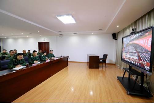 黄冈市消防支队官兵集中收看十九大开幕会直播。
