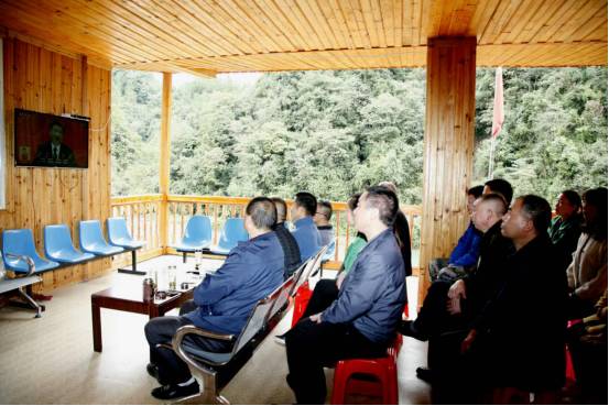 湖北省林业厅驻鹤峰县扶贫工作队党员干部集体收看十九大开幕会直播。