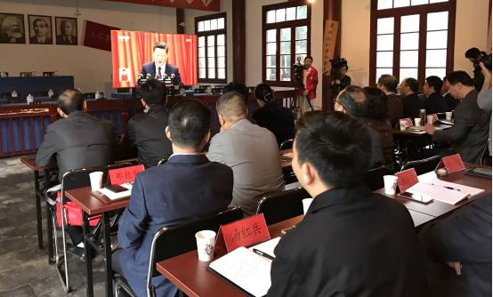 在中共五大会址,武汉市武昌区党员干部集中收看党的十九大开幕会直播。