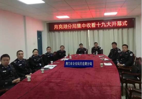 荆门市公安局月亮湖分局集中收看十九大开幕会直播。