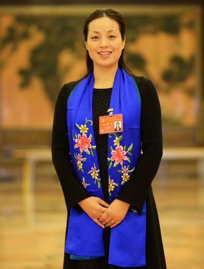 湖北省党代表杨小玲戴着一条特别的围巾走上党代表通道