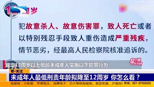 帮·关注:未成年人最低刑责年龄拟降至12周岁 你怎么看?