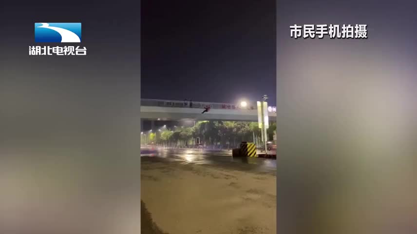 武汉:男子悬挂天桥摇摇欲坠 热心市民发起集体营救