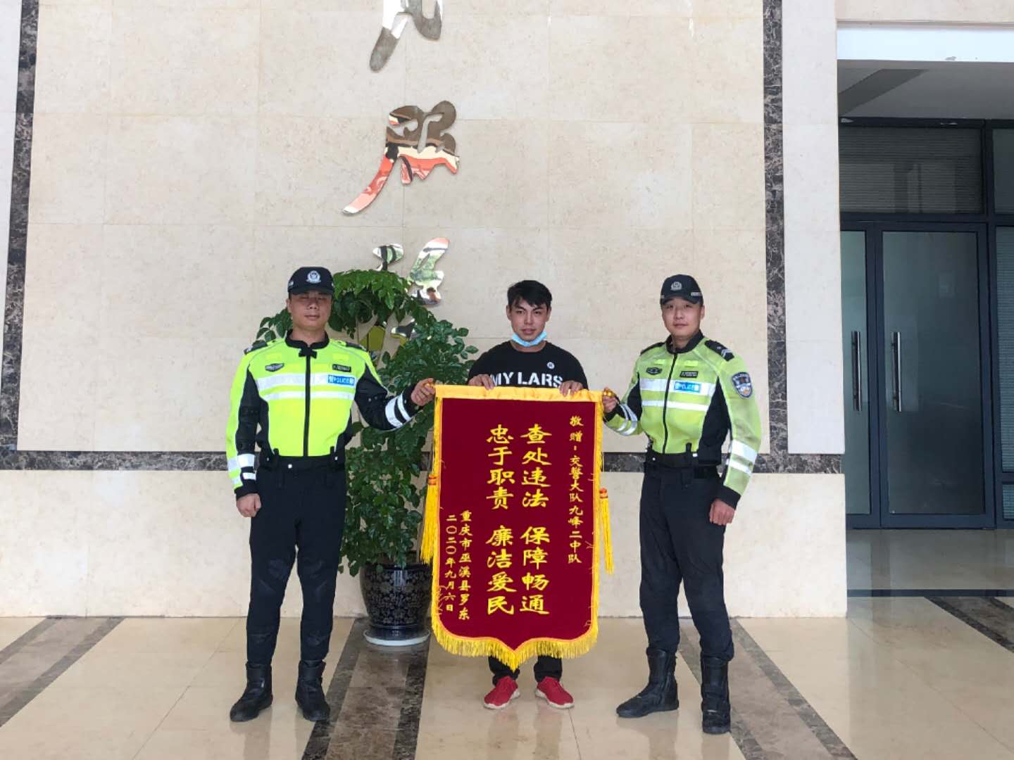 交警护送烫伤重庆游客就医,事后获锦旗致谢