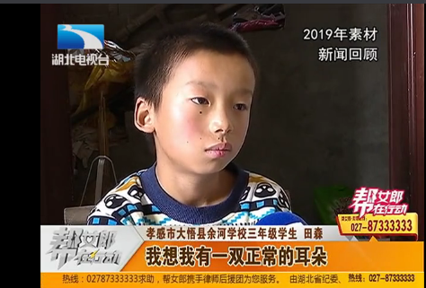 欢迎大家回到我们直播当中,去年年底,我们的帮女郎栏目报道了一位梦想上清华的九岁缺耳男孩田森,在爱 心医院的帮助之下,小田森完成了一期外耳廓的再造手术,今天他将进行二期手术,这次手术如果顺利的话, 小田森就能够有和正常人一样竖起来的耳朵了。