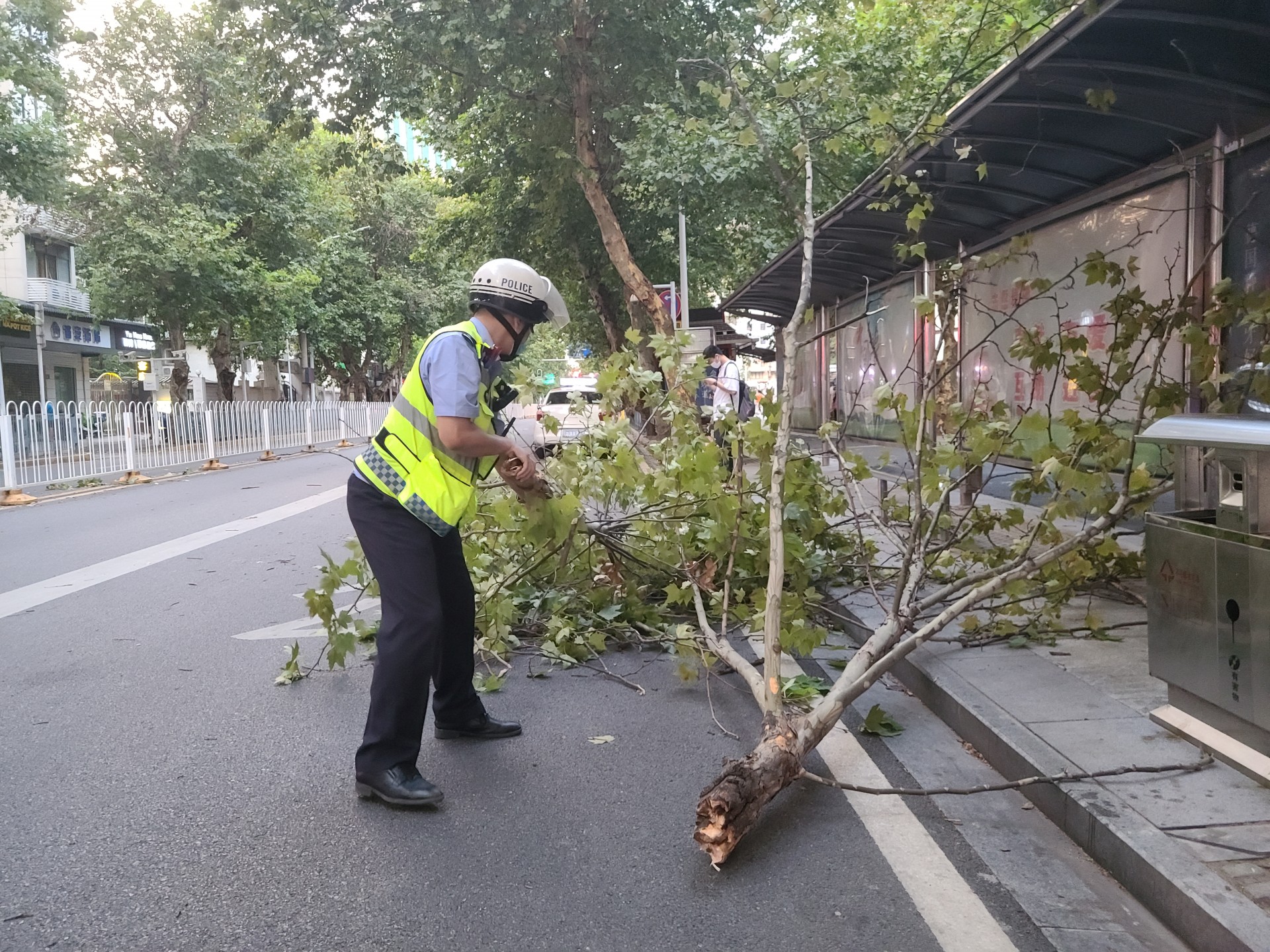 树干粗大抬不动,汉警快骑来帮忙