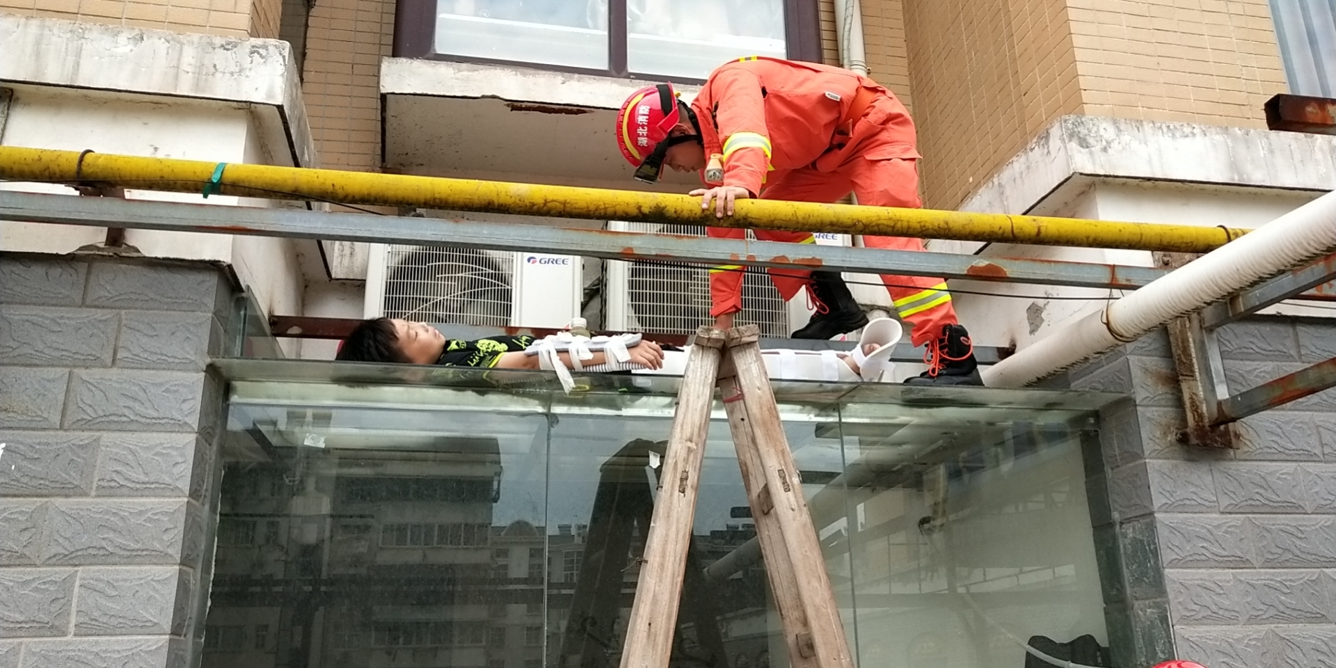 湖北孝感:女子坠入电梯井 消防紧急助其脱险