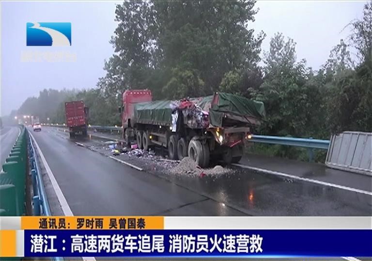 7月27号上午5点左右,沪渝高速潜江段两辆货车发生追尾,一名司机被困于驾驶室内,急需救援。接到报警后,潜江市园林消防救援立即前往现场处置。