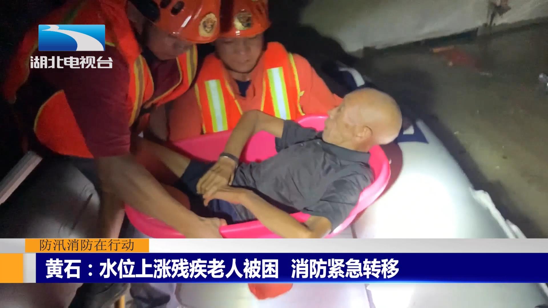 黄石:水位上涨残疾老人被困 消防紧急转移